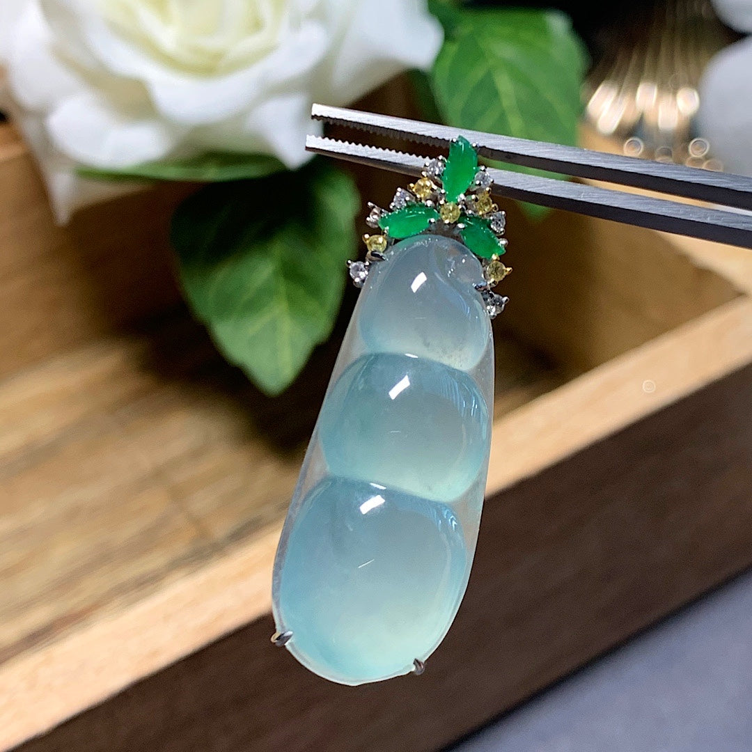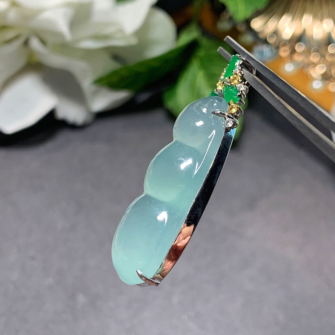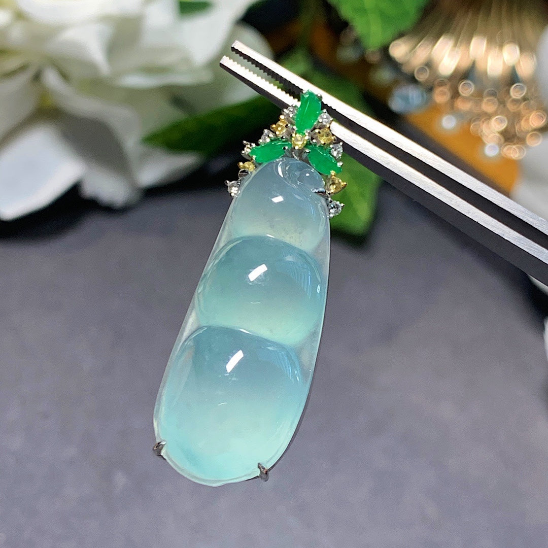 ☘️天然翡翠A货 冰种翡翠福豆吊坠