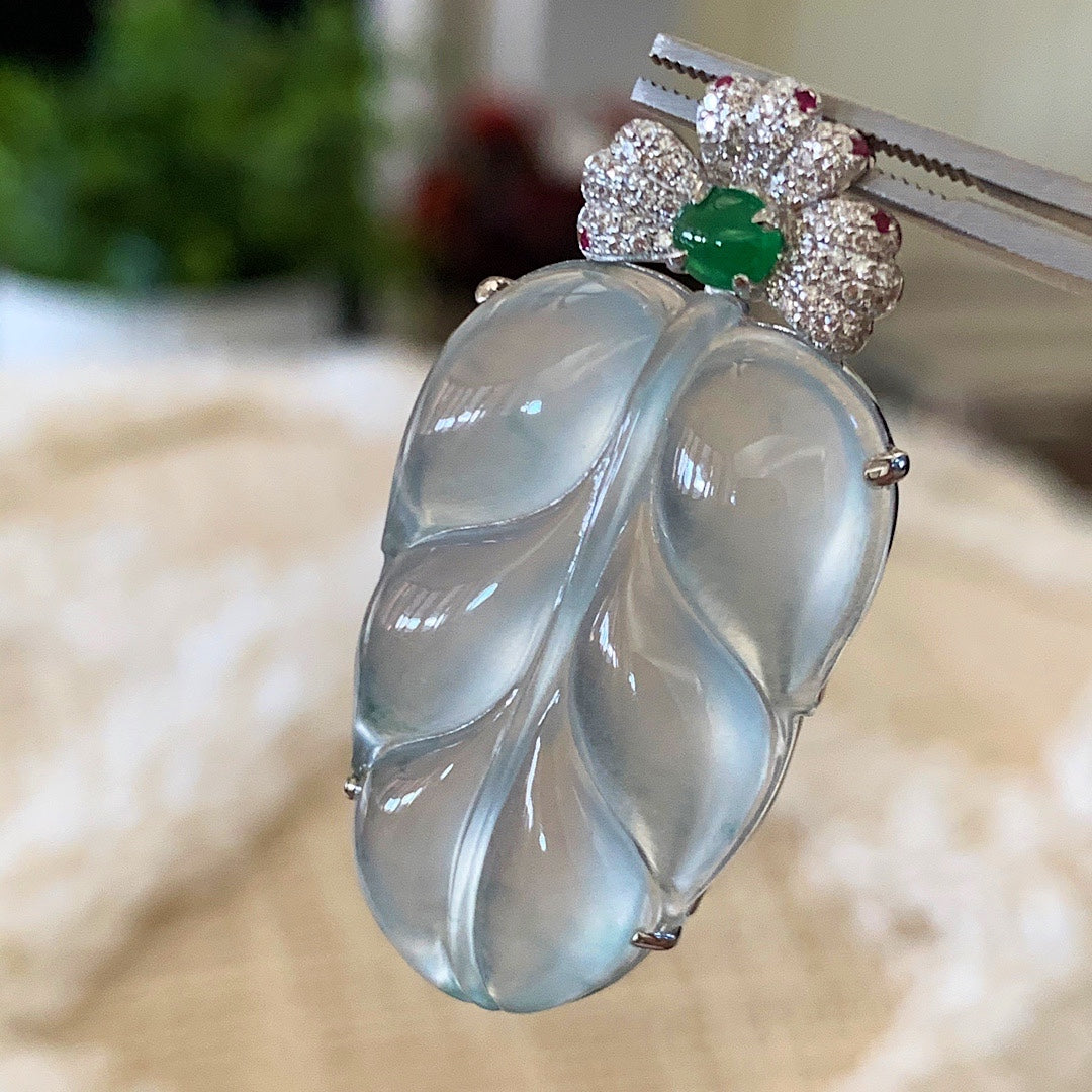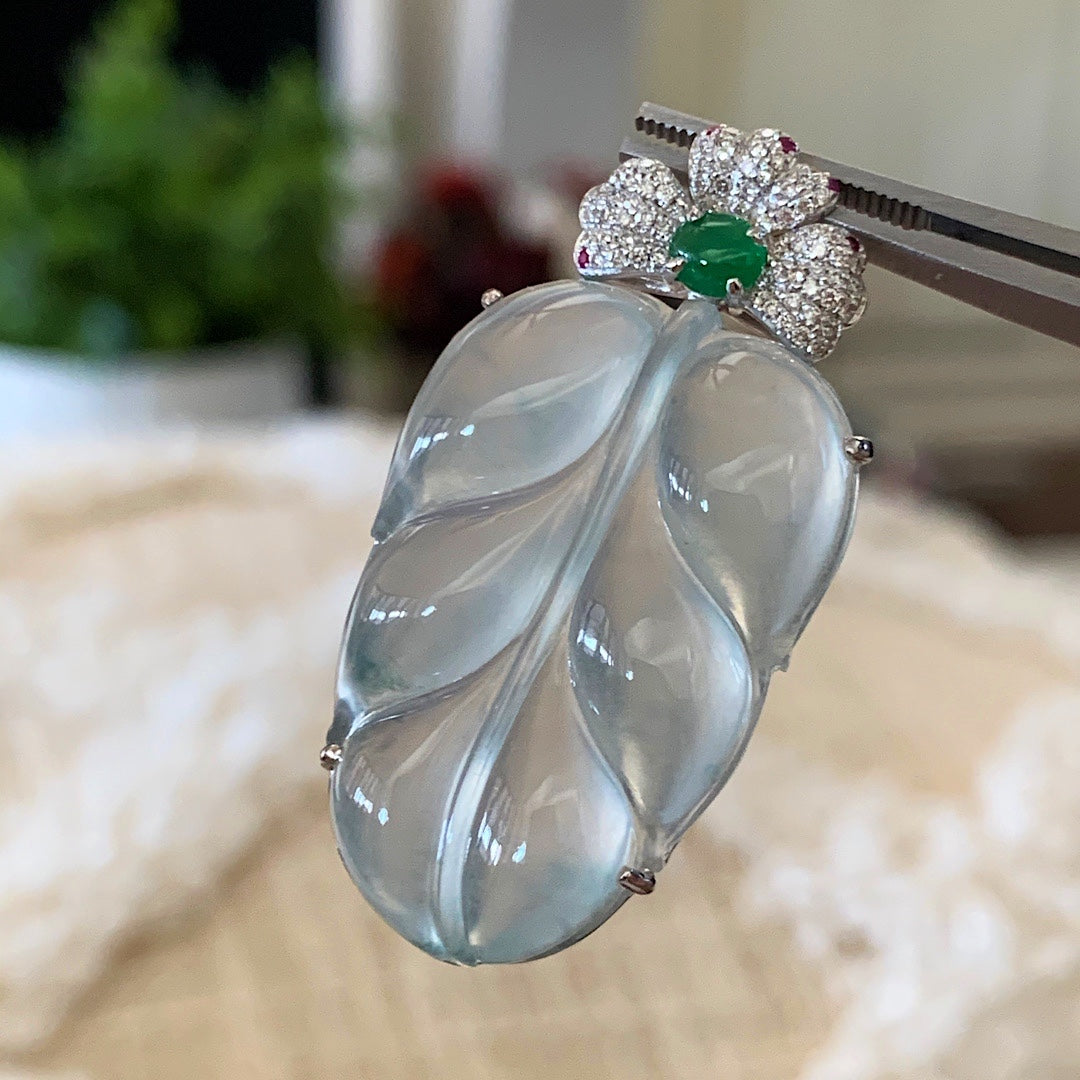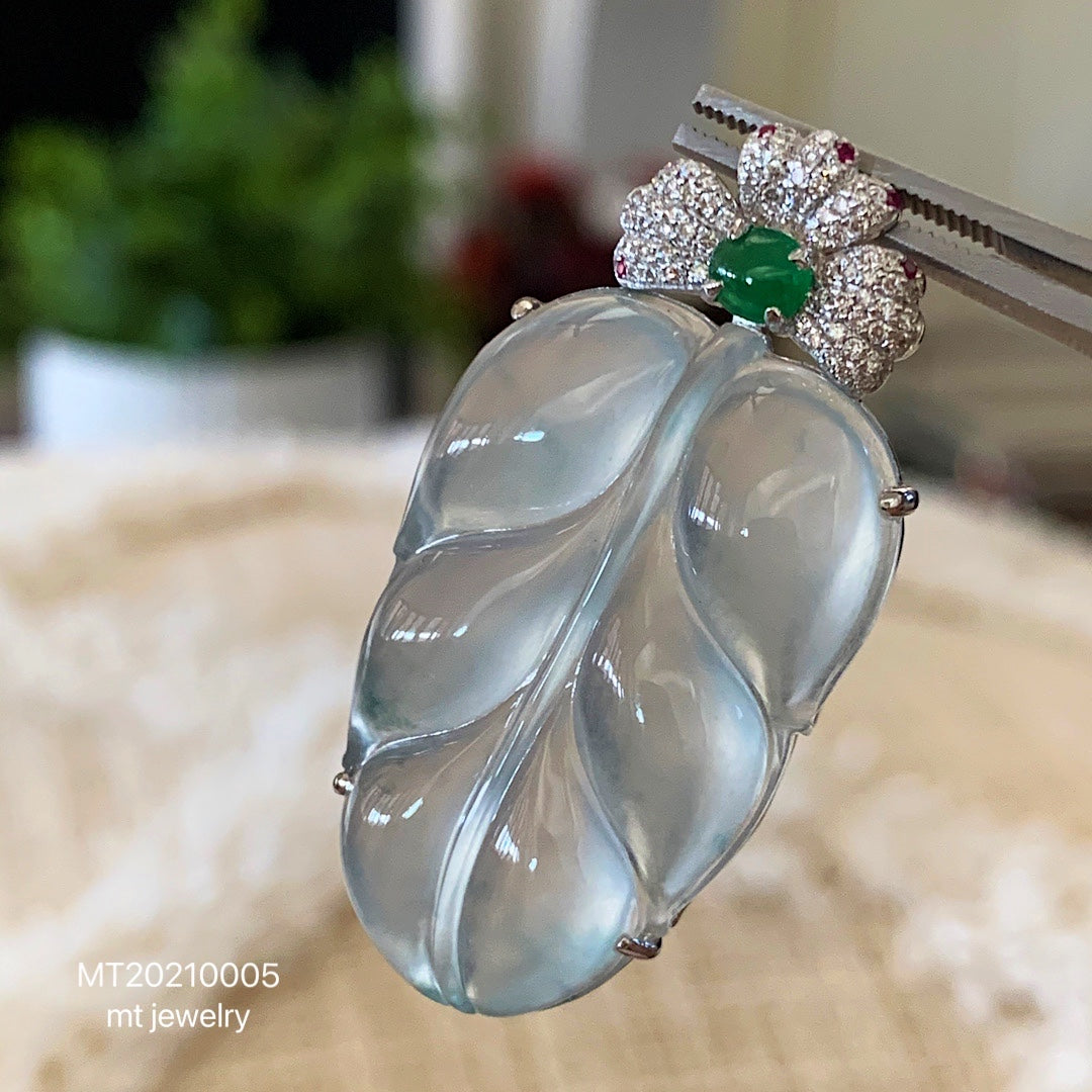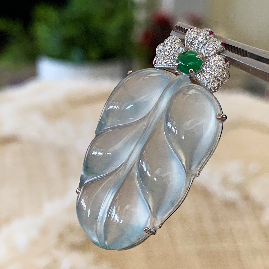 ☘️天然翡翠A货 完美冰玻种翡翠叶子吊坠