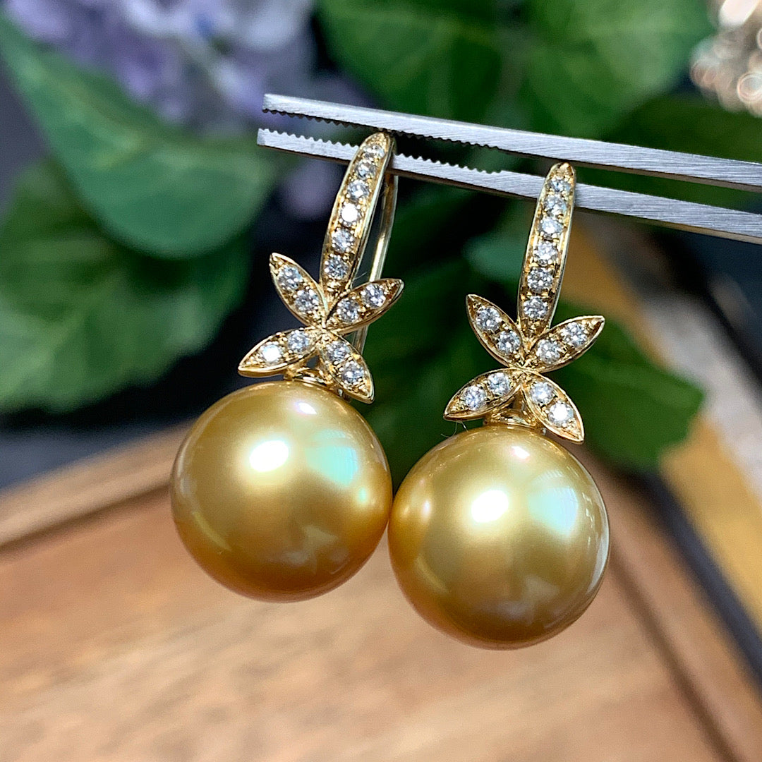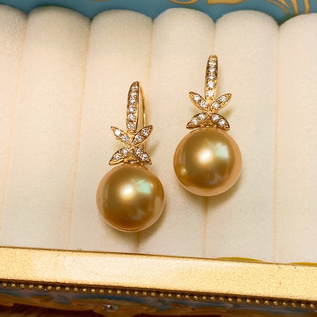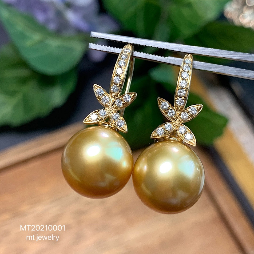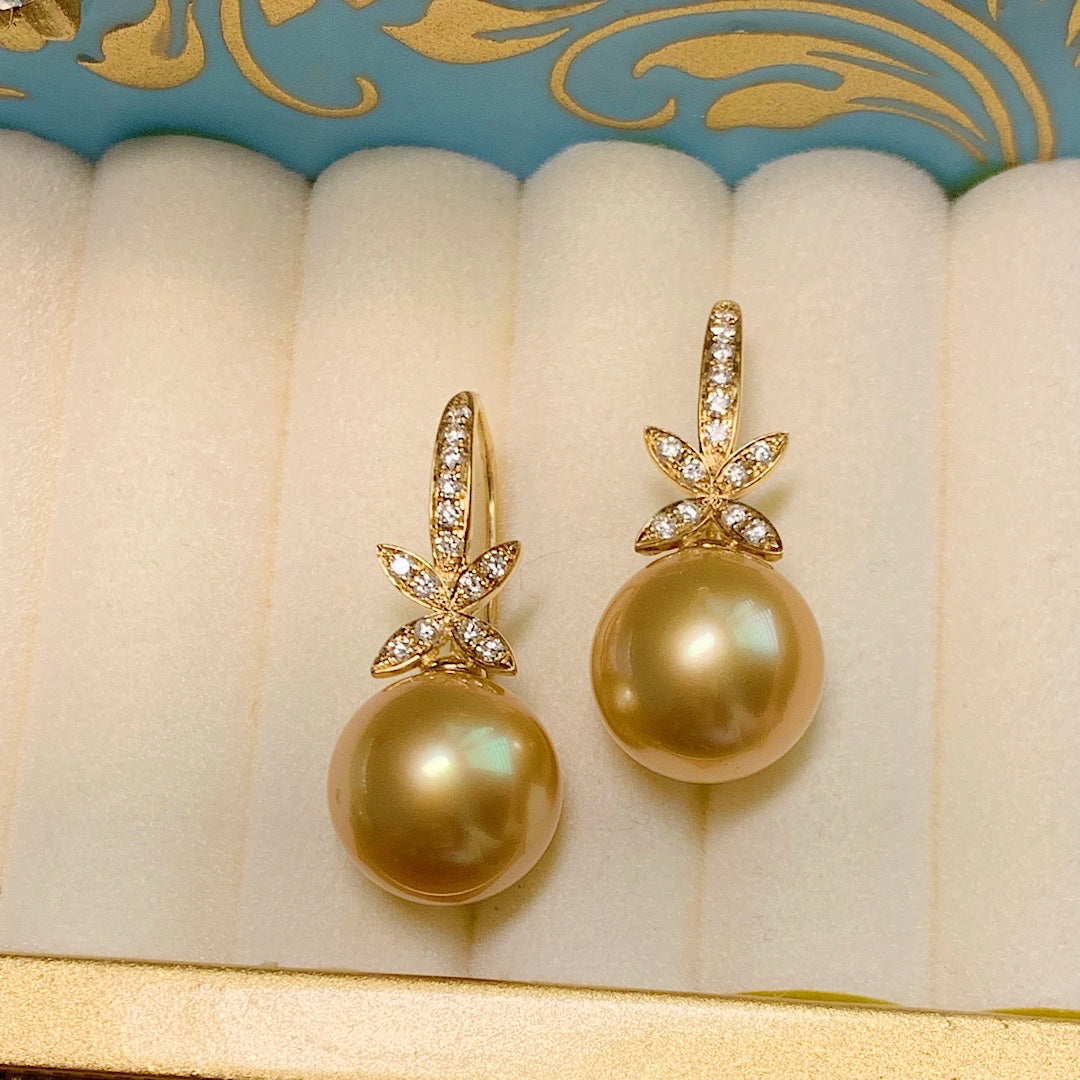☘️ 天然南洋金珠四叶草款钻石耳环