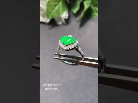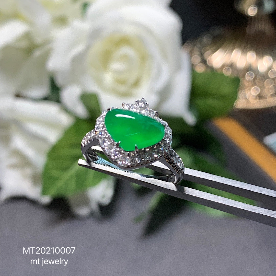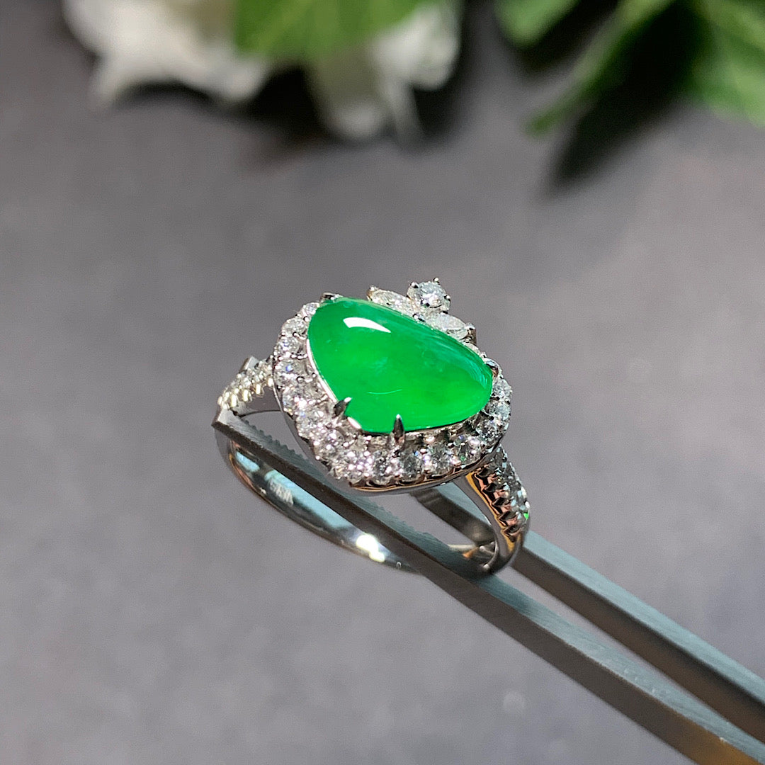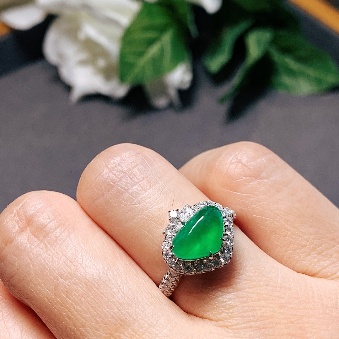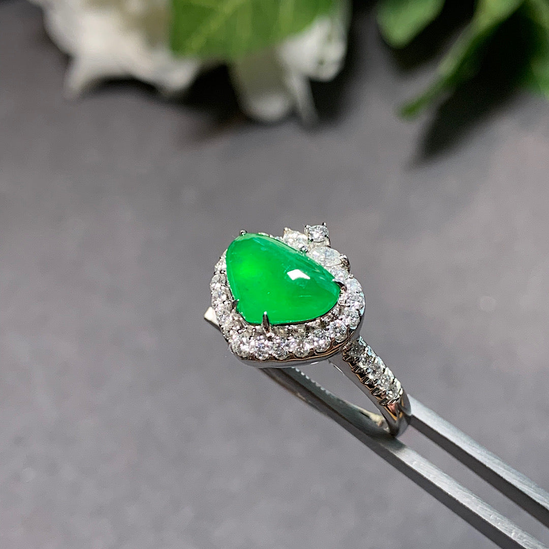 ☘️天然翡翠A货 冰玻种阳绿心形翡翠戒指