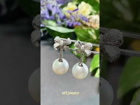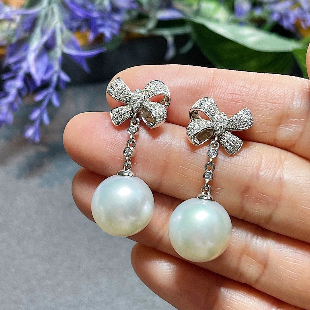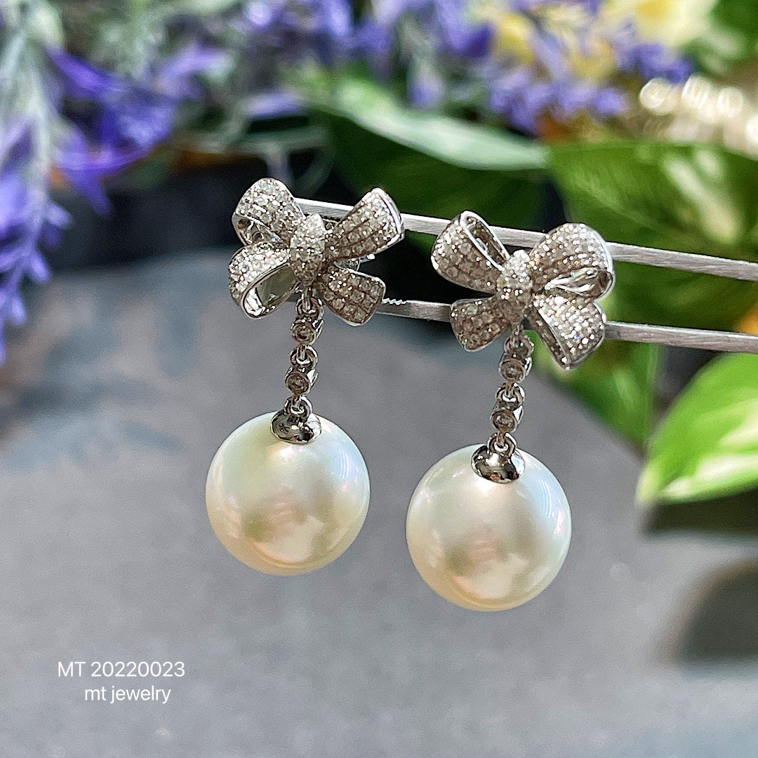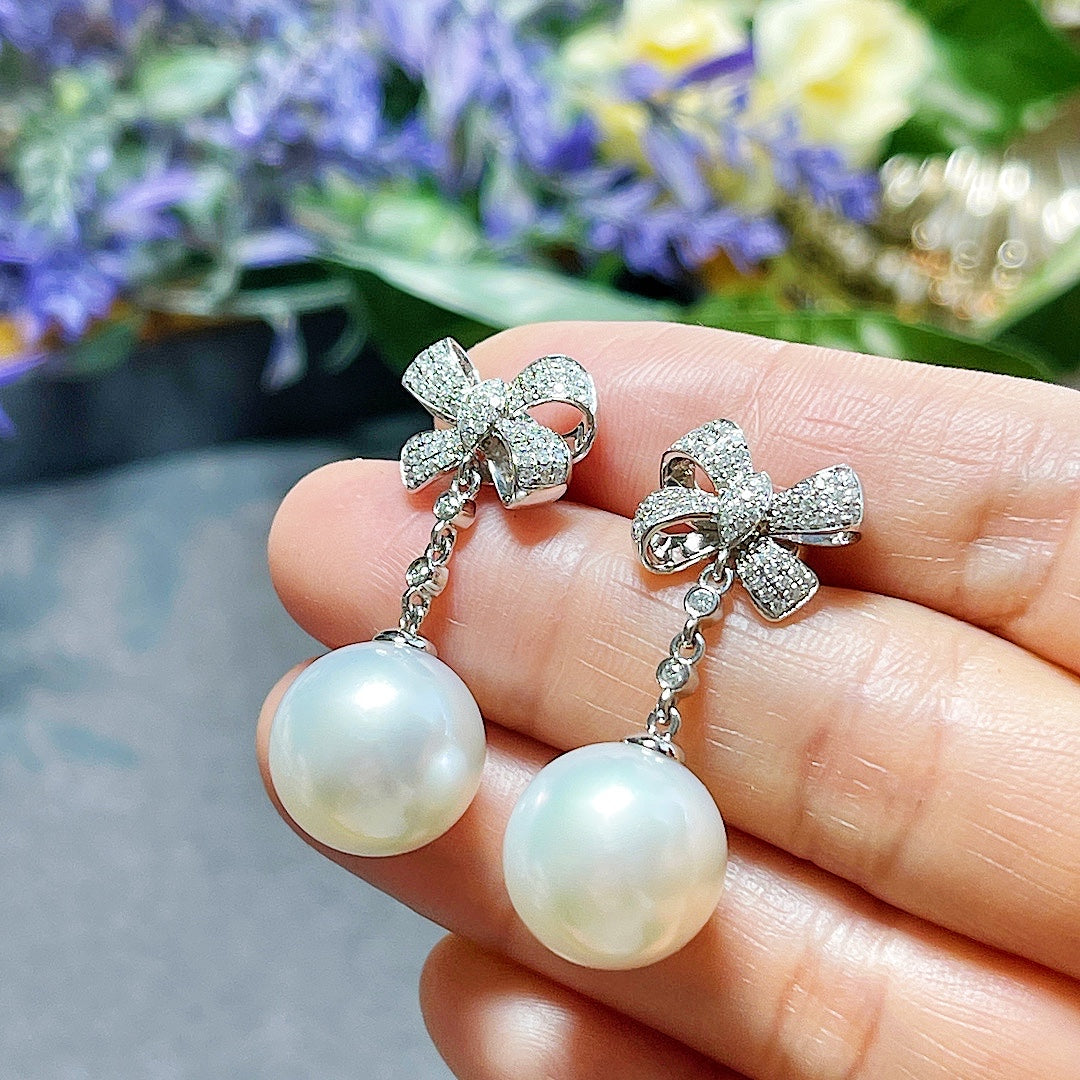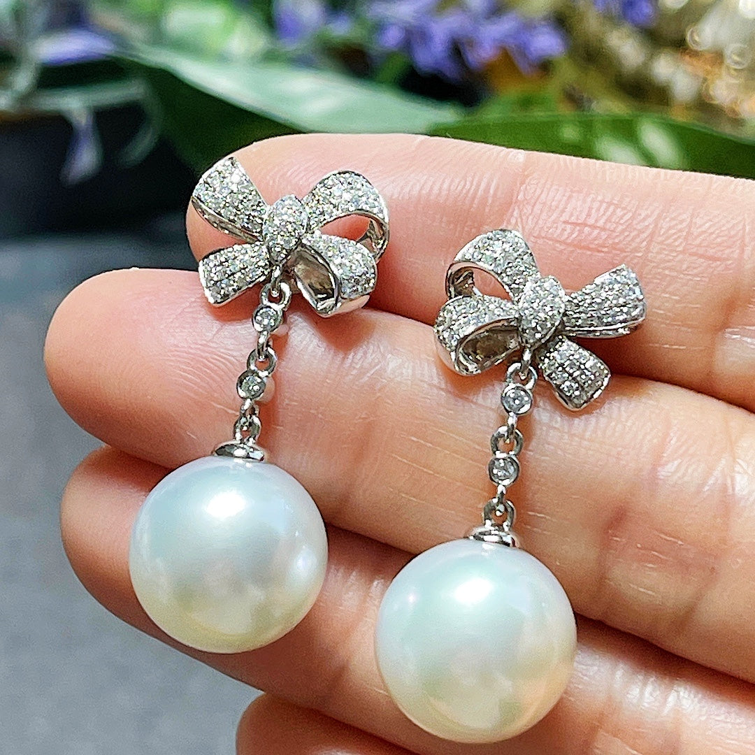 ☘️ 天然澳白珍珠蝴蝶结🎀钻石耳环