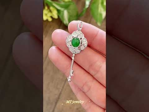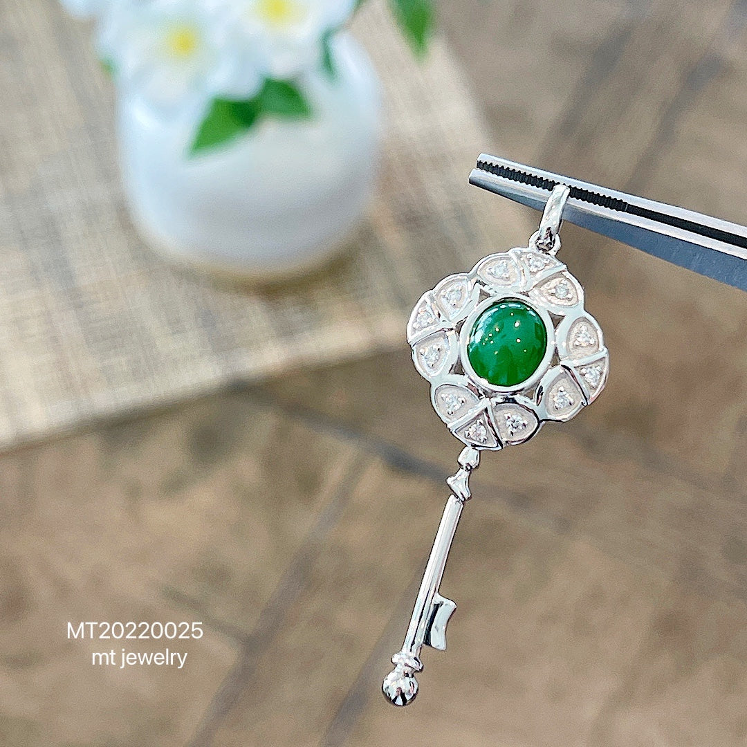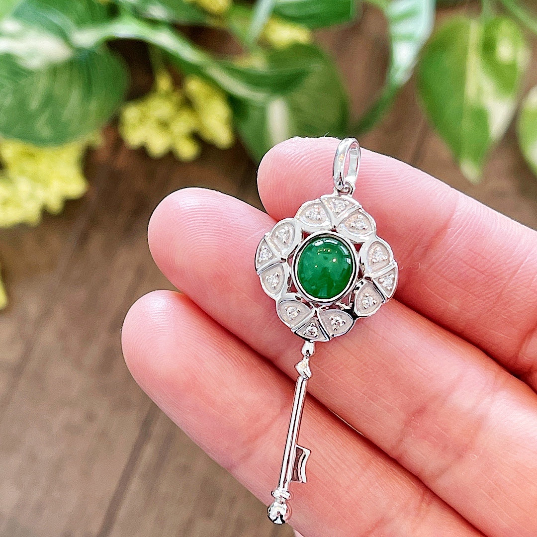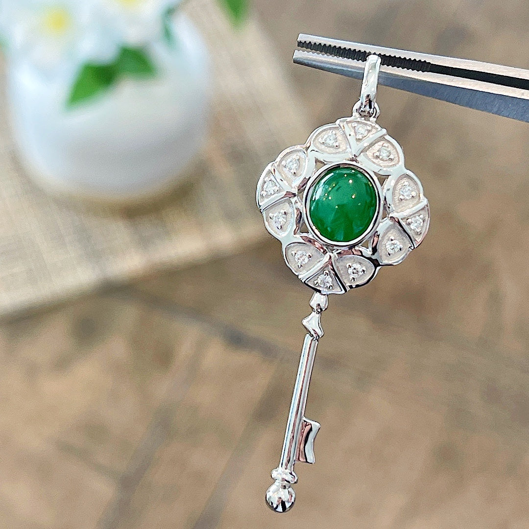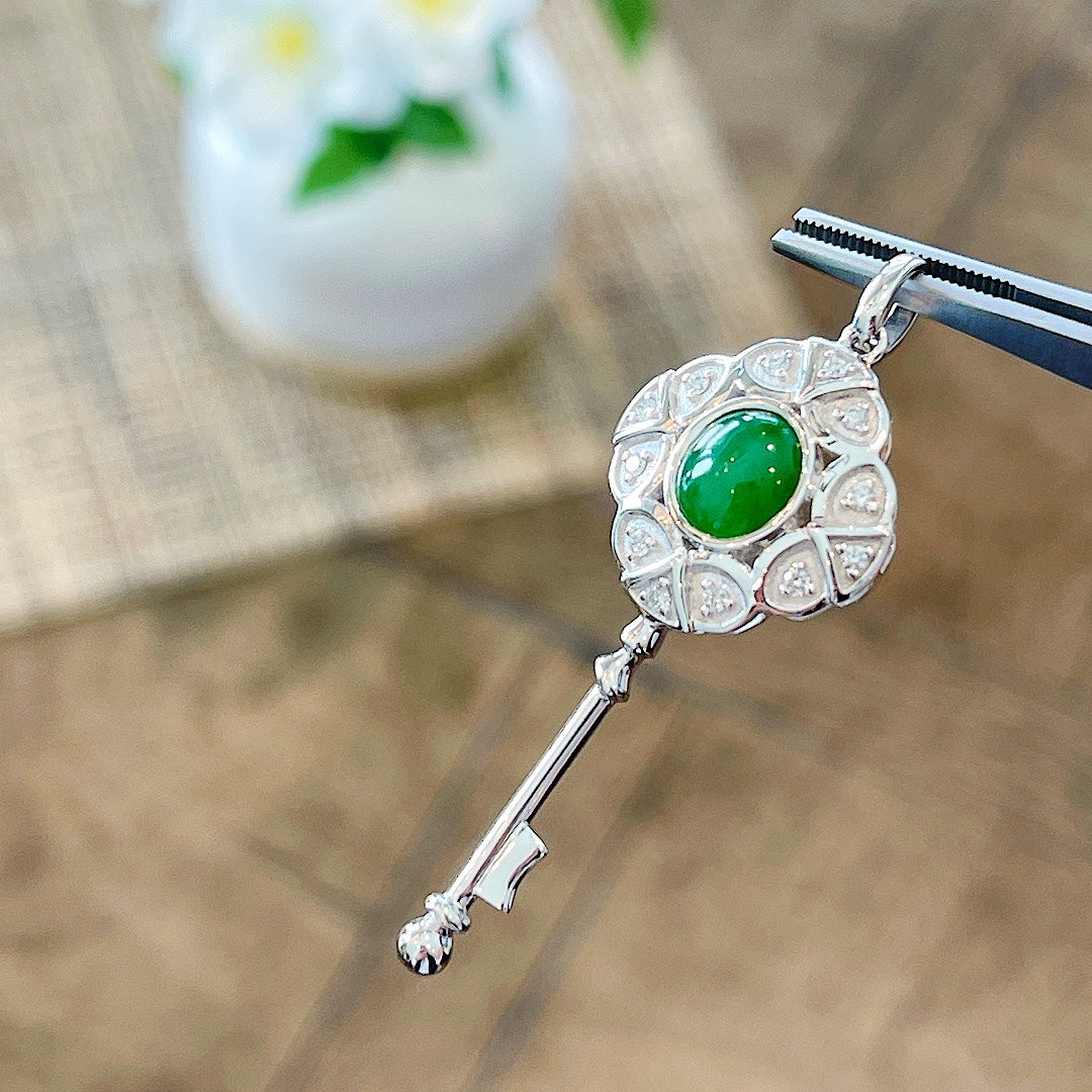 ☘️天然翡翠A货 冰种正绿蛋面钻石钥匙🔑吊坠