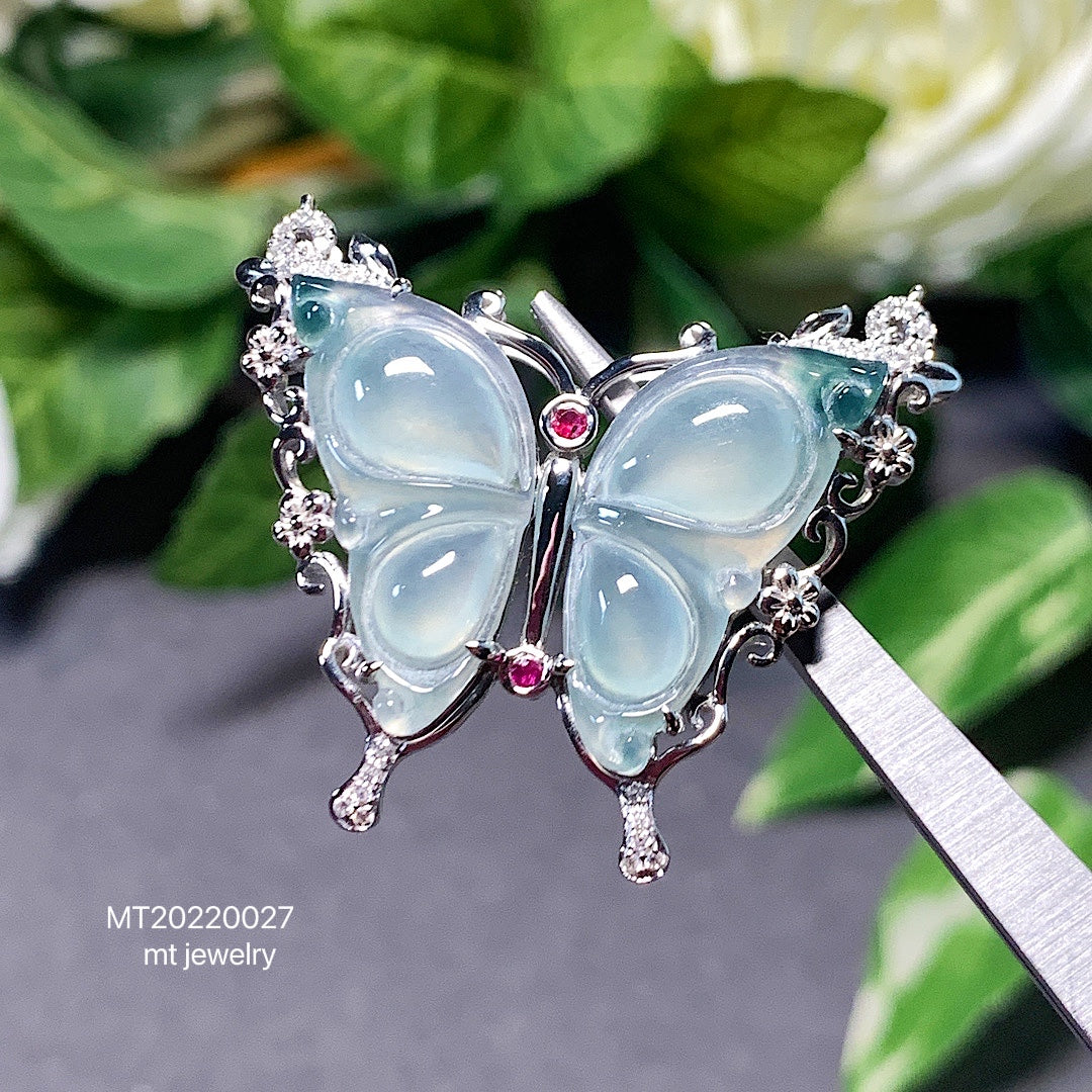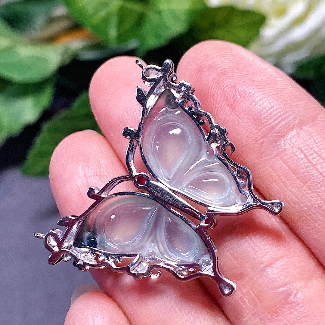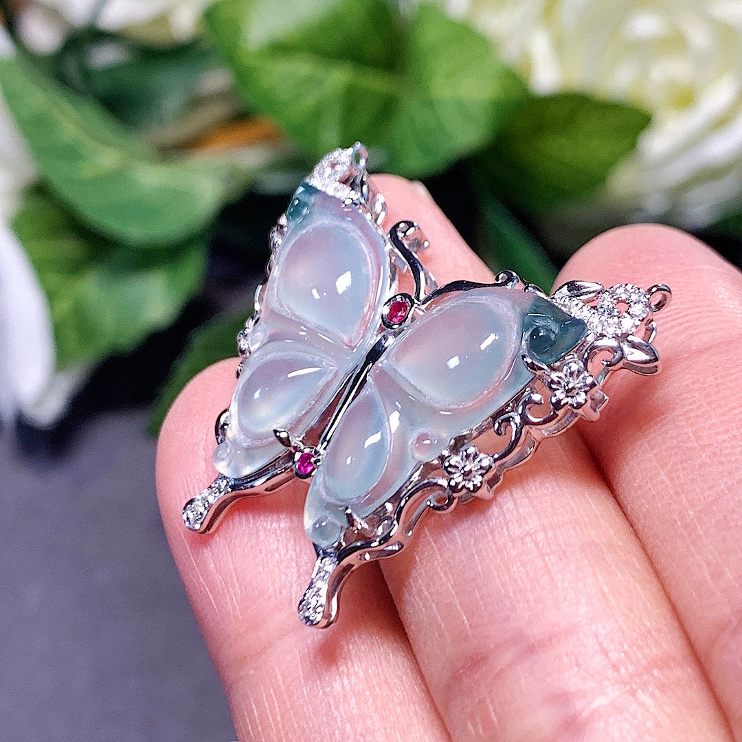 ☘️天然翡翠A货 翡翠冰种飘花蝴蝶吊坠