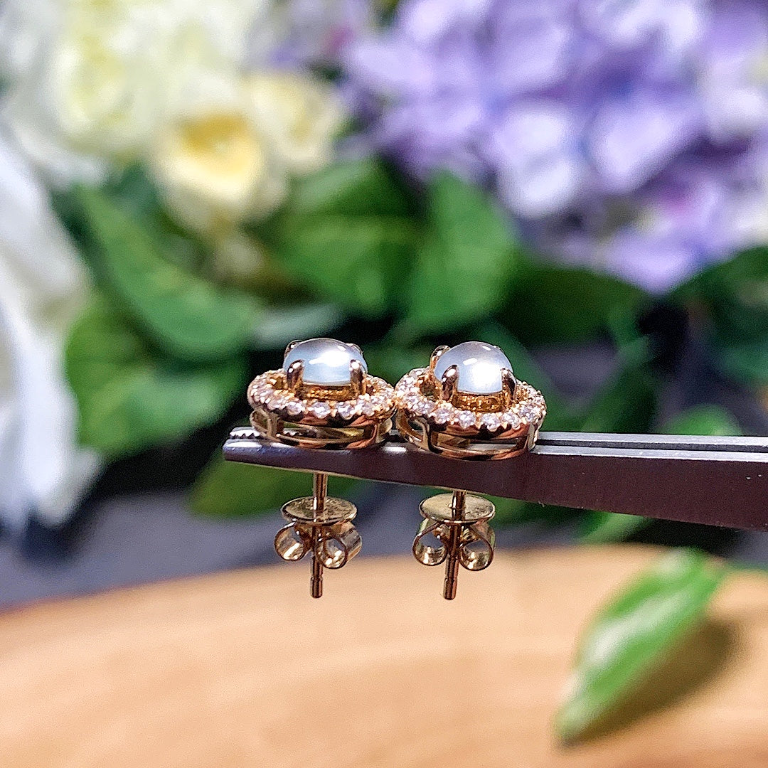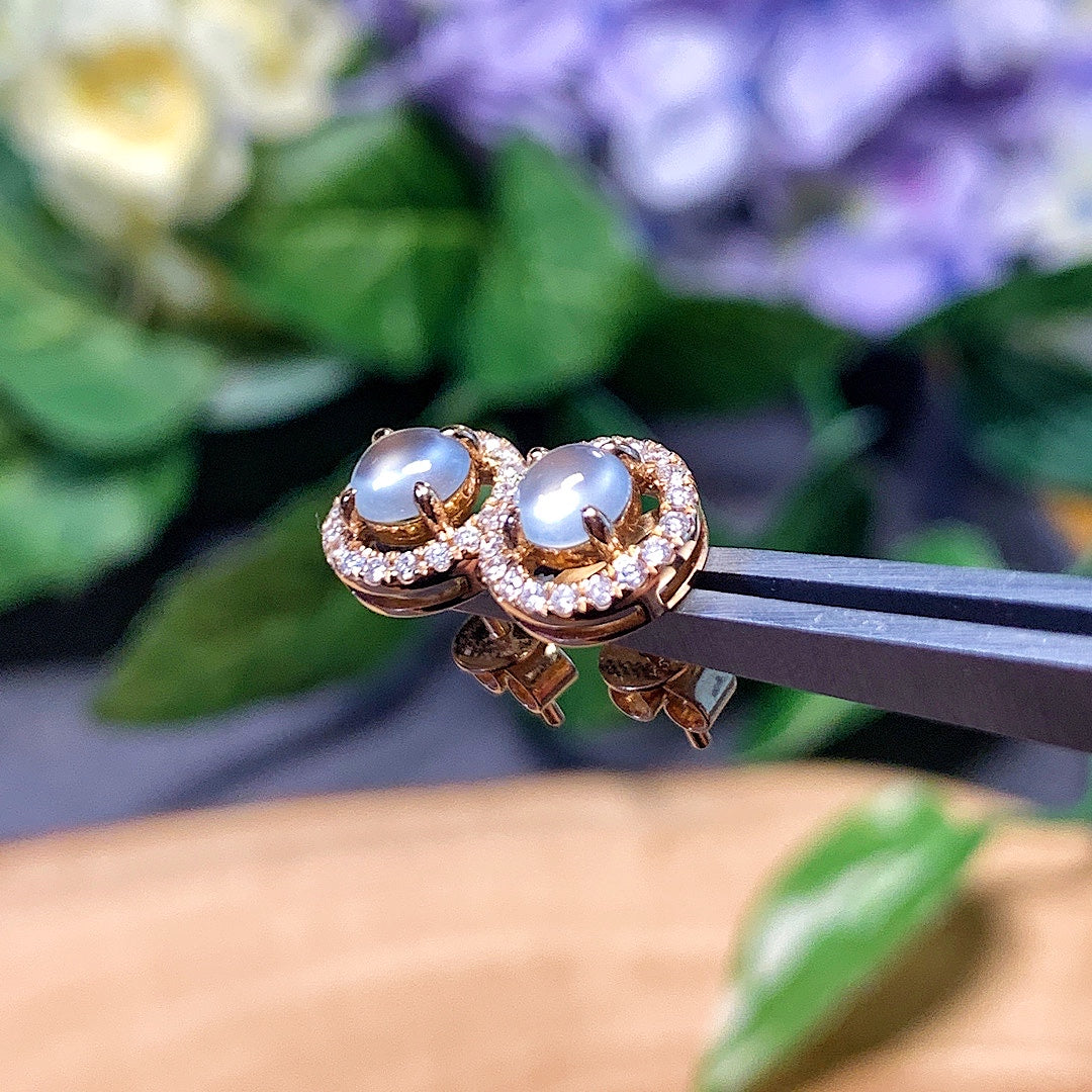 ☘️天然翡翠A货 玻璃种蛋面耳钉