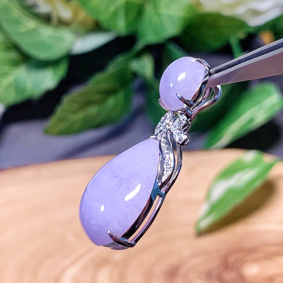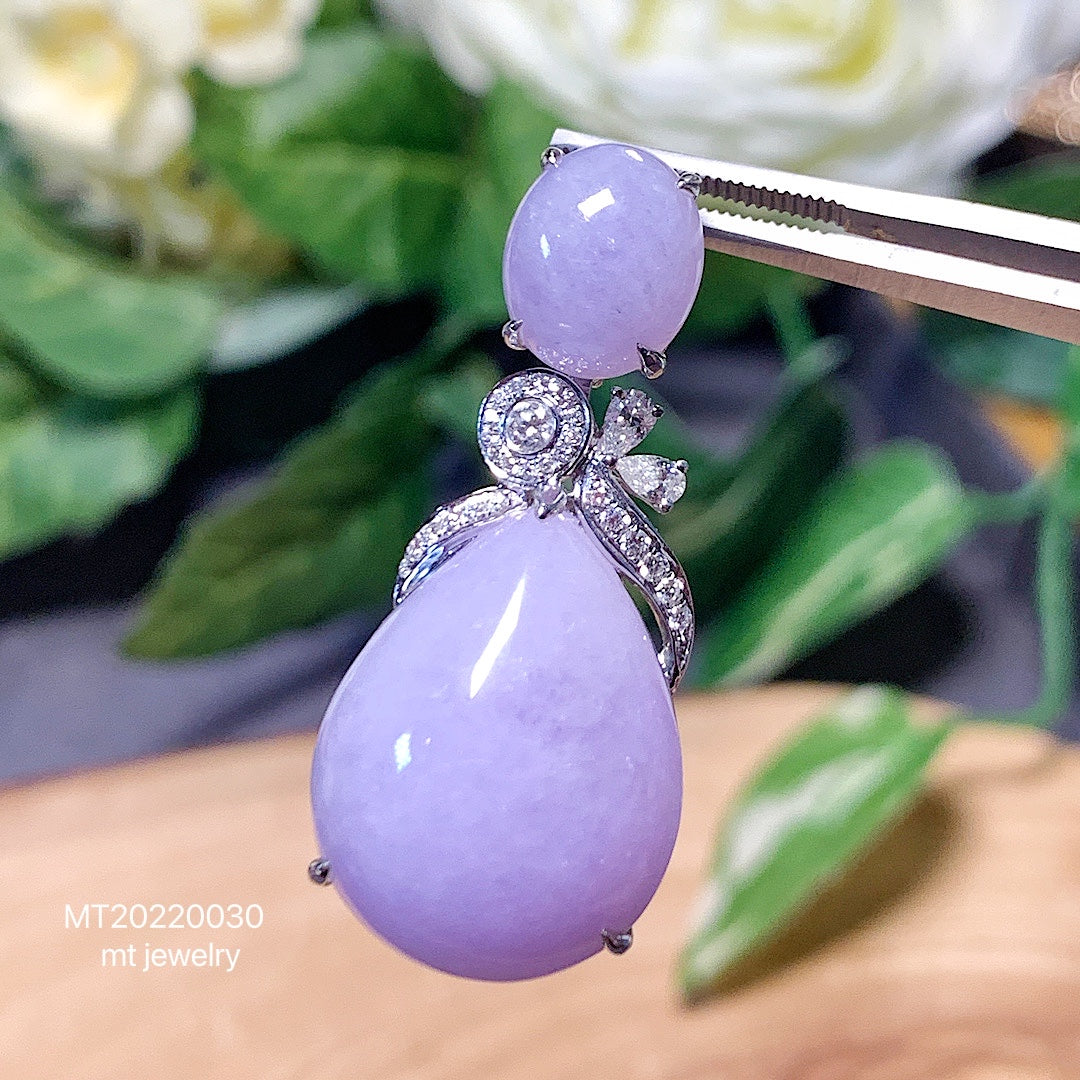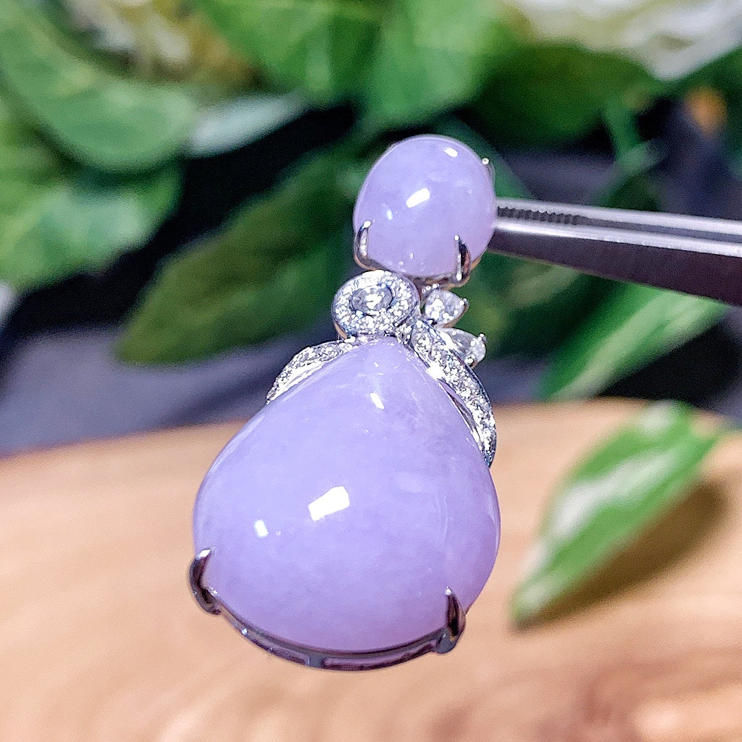 ☘️天然翡翠A货 糯冰翡翠紫罗兰吊坠