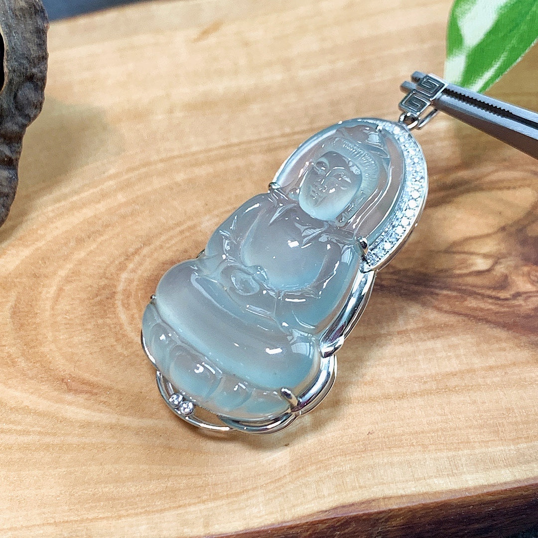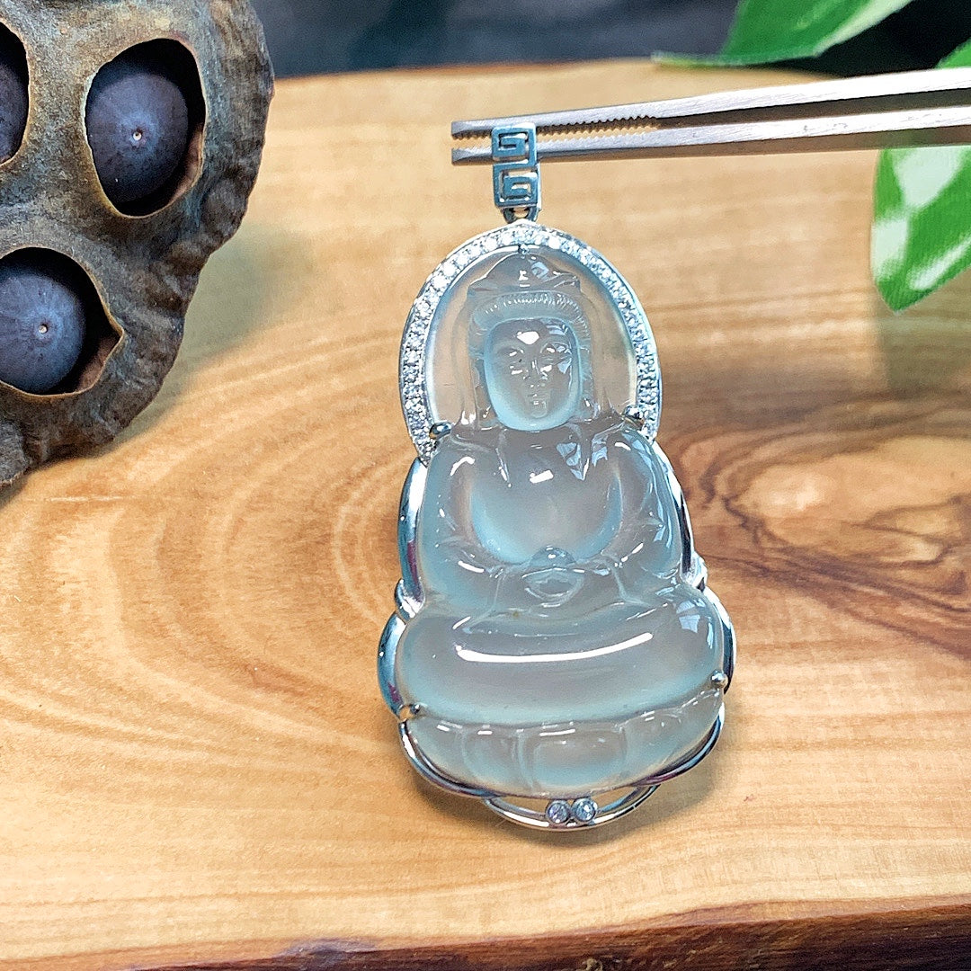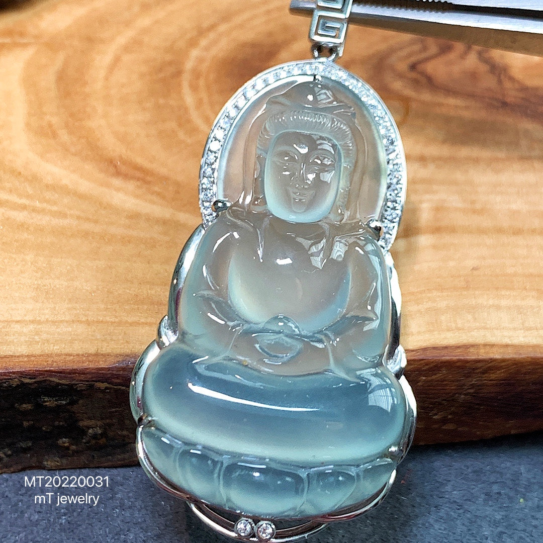 ☘️天然翡翠A货 高冰种翡翠观音吊坠